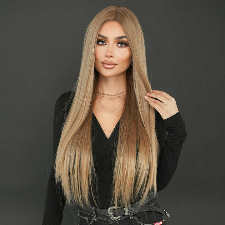 Blonde wig with center parted bangs for women's daily use